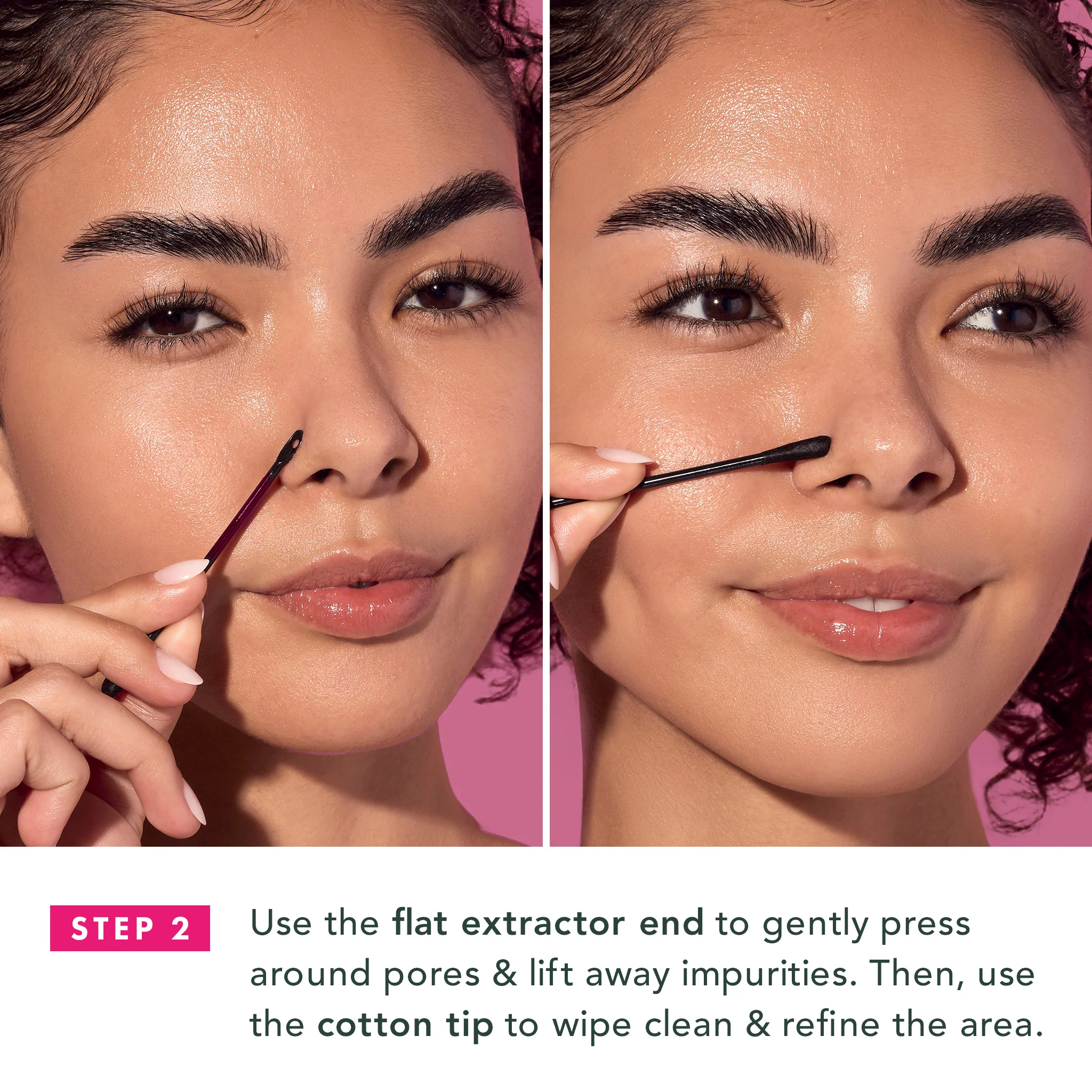 - Remove remaining impurities with sebum-clearing Double-Sided Extractor Tool