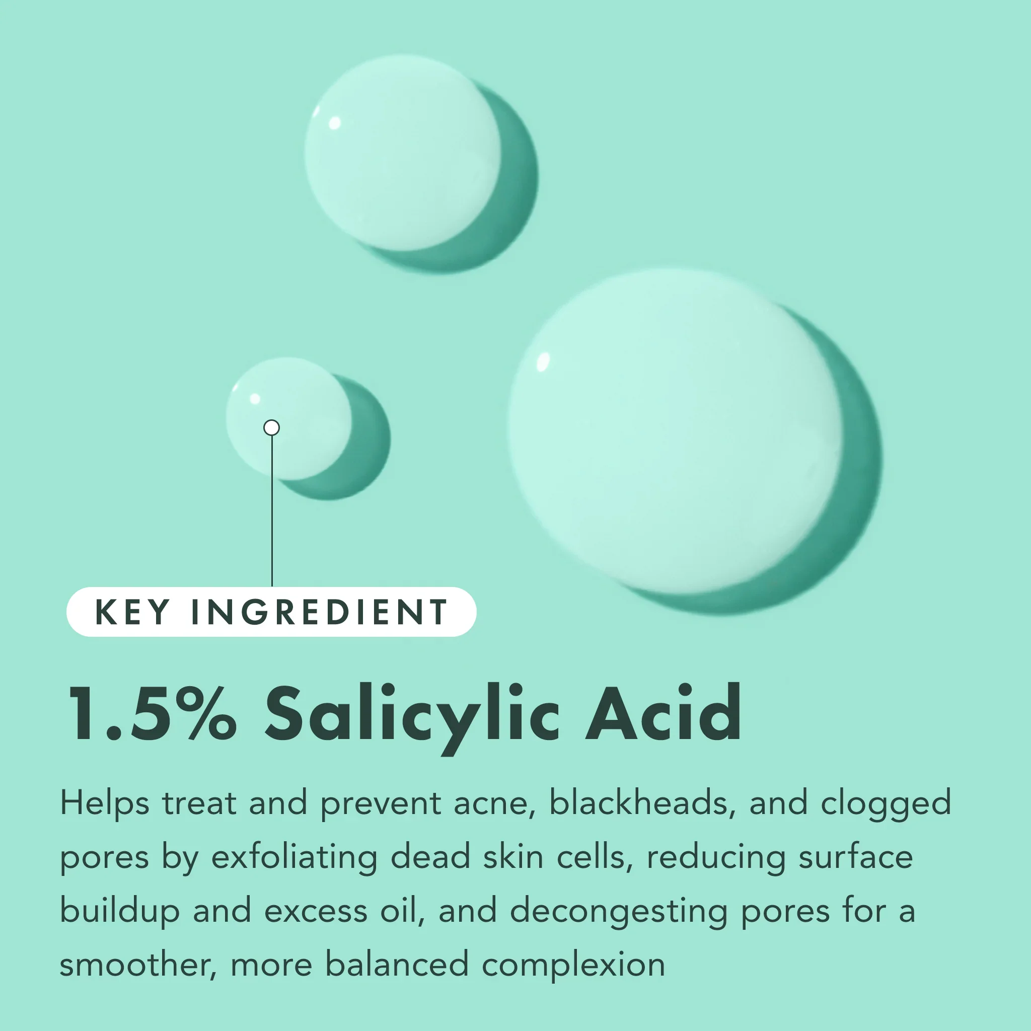 Our Salicylic Acid serum is specially designed to address acne at every stage and support your skin’s natural barrier to prevent future breakouts. This non-drying, fragrance-free serum formula contains 1.5% medicated Salicylic Acid to treat active acne, blackheads, and clogged pores while gently exfoliating dead skin cells for a smoother, more even complexion. Paired with 2% Niacinamide and 0.5% Zinc PCA, this face serum effectively diminishes the appearance of blemishes and dark spots, regulates excess oil production, improves skin texture, and soothes acne-prone skin. Hyaluronic Acid, a key ingredient for skin hydration, helps your skin remain moisturized to prevent tightness and boost elasticity. And as an added bonus, the bottle, dropper, and cap are made of a mono-material, meaning they are all recyclable!Â