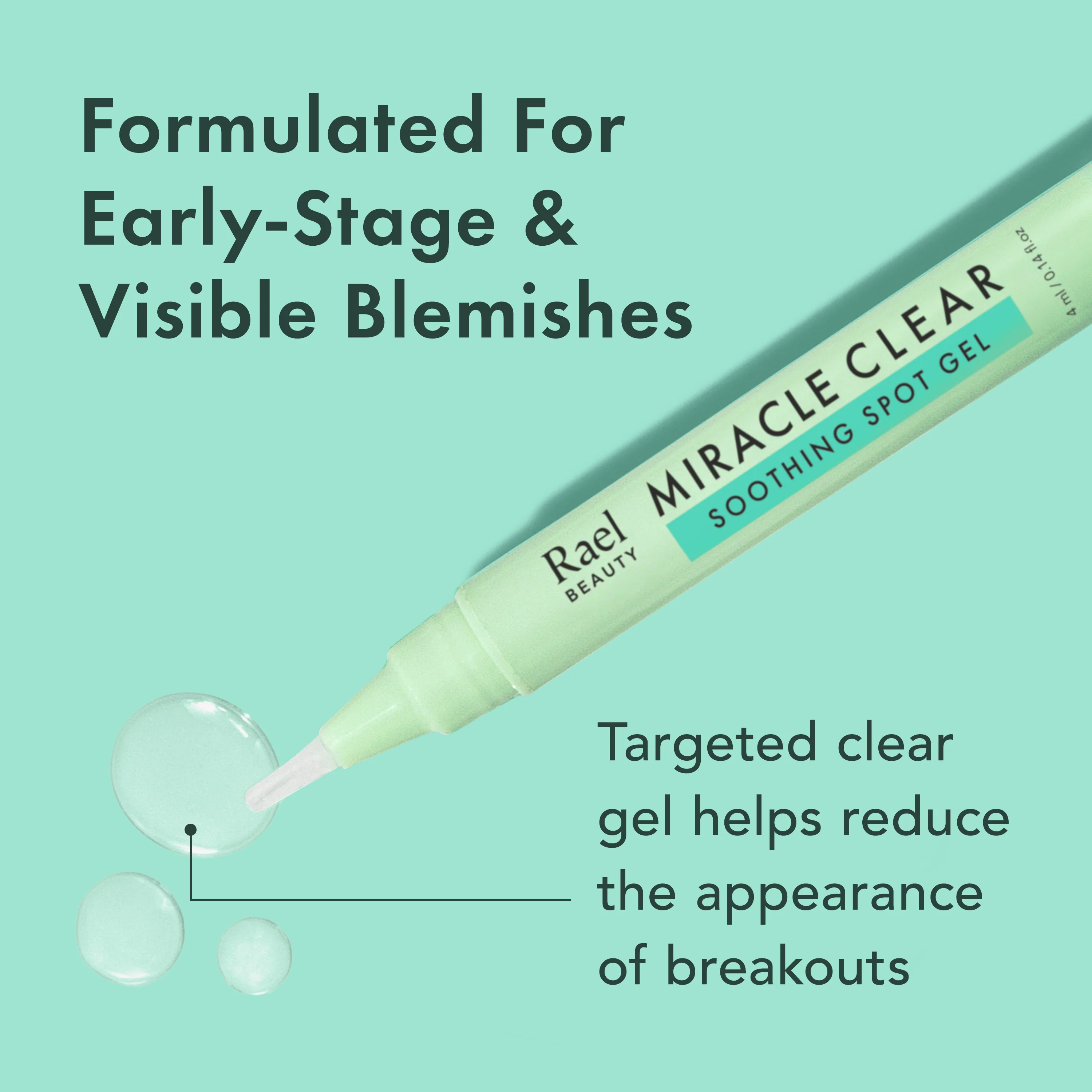 Say hello to clearer-looking skin with Miracle Clear Soothing Spot Gel. Designed for on-the-go use, this quick-drying gel comes in a clickable applicator with an antimicrobial silicone brush that resists bacterial growth for fresh, hygienic application every time. Formulated with five types of Centella Asiatica to help calm visible redness and irritation, plus Succinic Acid to balance excess oil and gently support skin turnover, this spot treatment is an easy, convenient choice for busy days. Dermatologist tested.